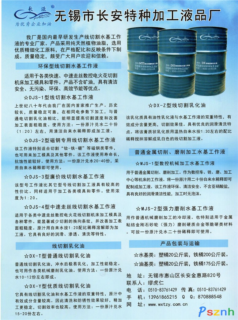 | 公司名稱: | 無錫市長(zhǎng)安特種加工液品廠 | ||