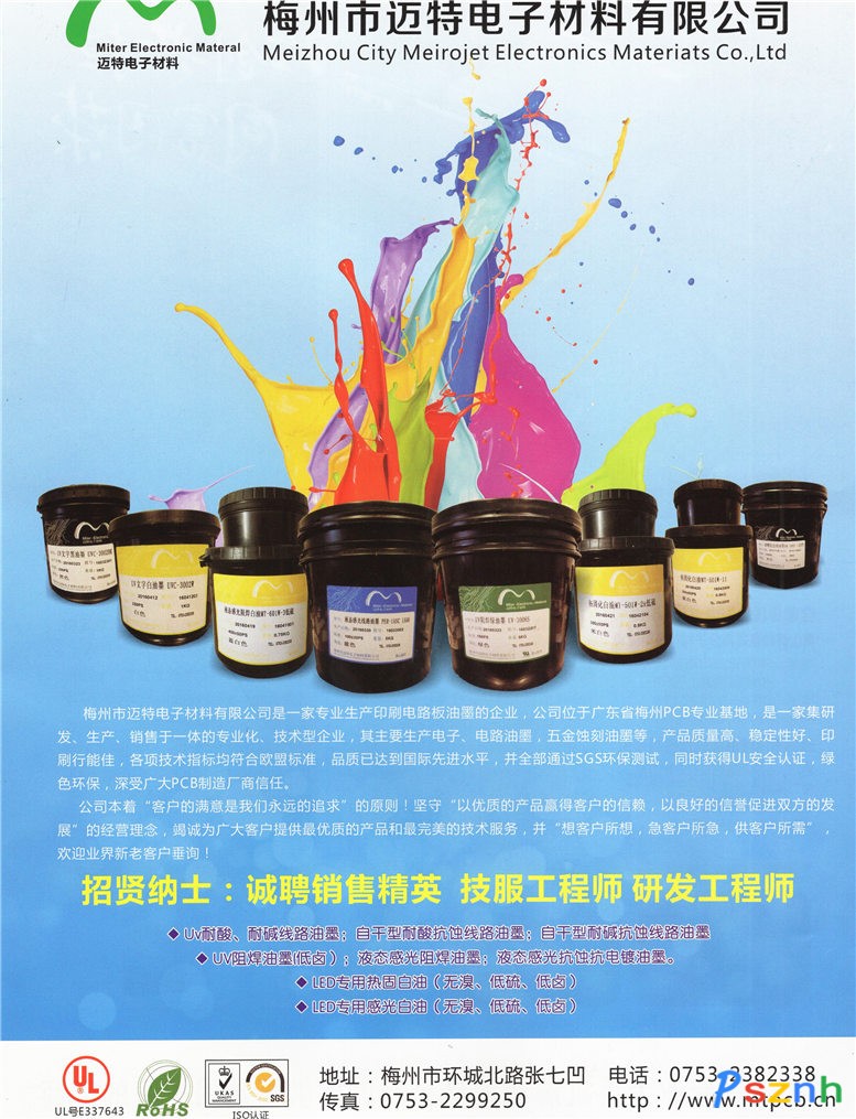 梅州市邁特電子材料有限公司_電子_電路油墨_五金蝕刻油墨點(diǎn)擊:1713 查看原圖![]() ![]() ![]() 梅州市邁特電子材料有限公司