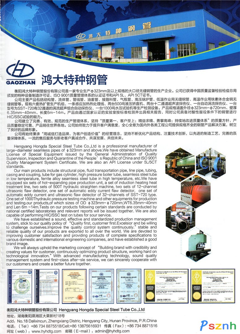| 公司名稱: | 衡陽(yáng)鴻大特種鋼管股份有限公司 | ||