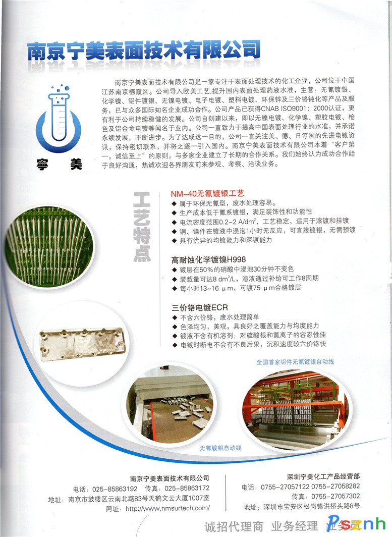 南京寧美表面技術(shù)有限公司 光亮鎳鍍液 電泳漆 塑膠電鍍 槍色 鋁合金電鍍點擊:1267 查看原圖![]() ![]() ![]() 南京寧美表面技術(shù)有限公司
