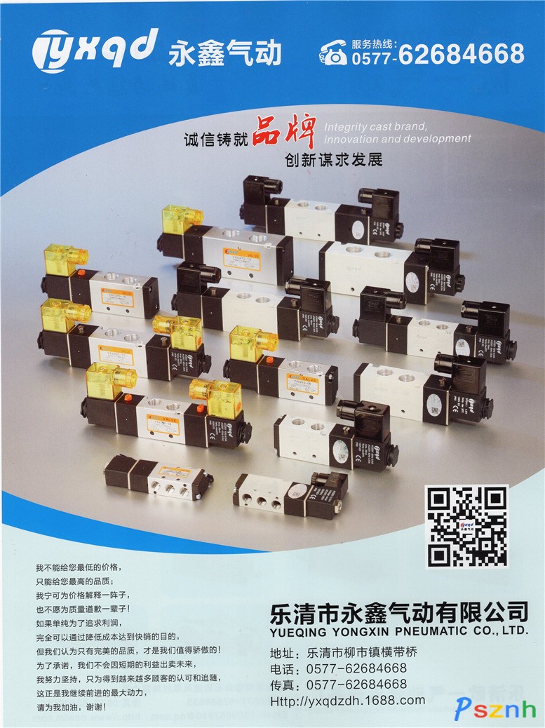 樂清市永鑫氣動有限公司 電磁閥 氣缸 氣動接頭點擊:513 查看原圖![]() ![]() ![]() 樂清市永鑫氣動有限公司