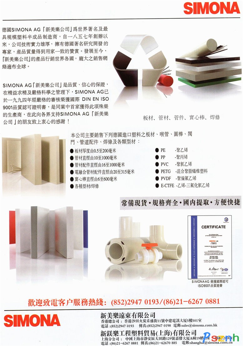 管道_管件_閥門_型材_焊接棒-新鎂樂工程塑料貿(mào)易(上海)有限公司點(diǎn)擊:2529 查看原圖![]() ![]() ![]() 新美樂遠(yuǎn)東有限公司 香港火炭禾盛街11號 中建電訊大廈5樓501室 電話: (852) 2947 0193 傳真: (852) 2947 0198 sales@simona-hk.com |