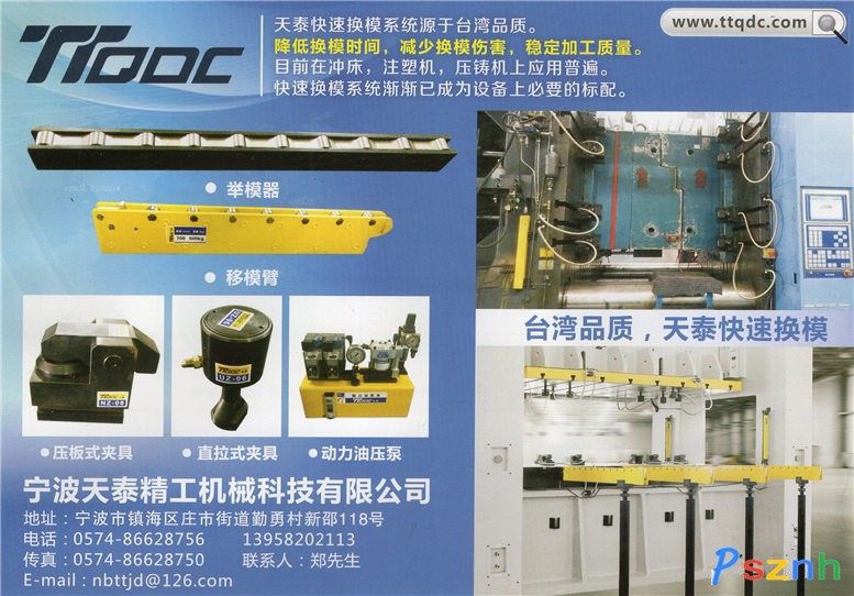 寧波天泰機電技術(shù)有限公司 注塑機快速換模系統(tǒng) 壓鑄機快速換模系統(tǒng) 換模臺車點擊:1534 查看原圖![]() ![]() ![]() 聯(lián)系人:鄭先生
