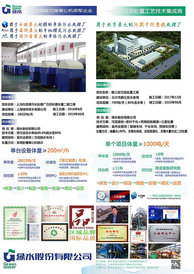 | 經營范圍: | 離心機、污泥干化焚燒發(fā)電系統(tǒng)設備、PE管式過濾機、細格柵過濾機、螺旋壓榨機、濃縮脫水一體機、環(huán)保成套設備制造、銷售,國家準許的貨物與技術自由進出口貿易;普通貨運;環(huán)保工程總承包,土木工程建筑施工;軟件研發(fā);非金融類投資。 | ||