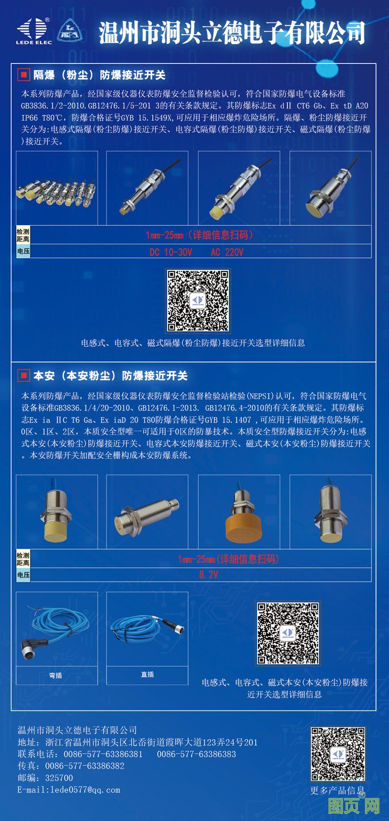 電感式傳感器_NAMUR型傳感器 _光電開關(guān)_隔爆、粉塵防爆傳感器_ 磁式傳感器_電容式傳感器_光電傳感器 _輸送帶保護裝置_安全光幕-溫州市洞頭立德電子有限公司點擊:4338 查看原圖![]() ![]() ![]() 簡介: