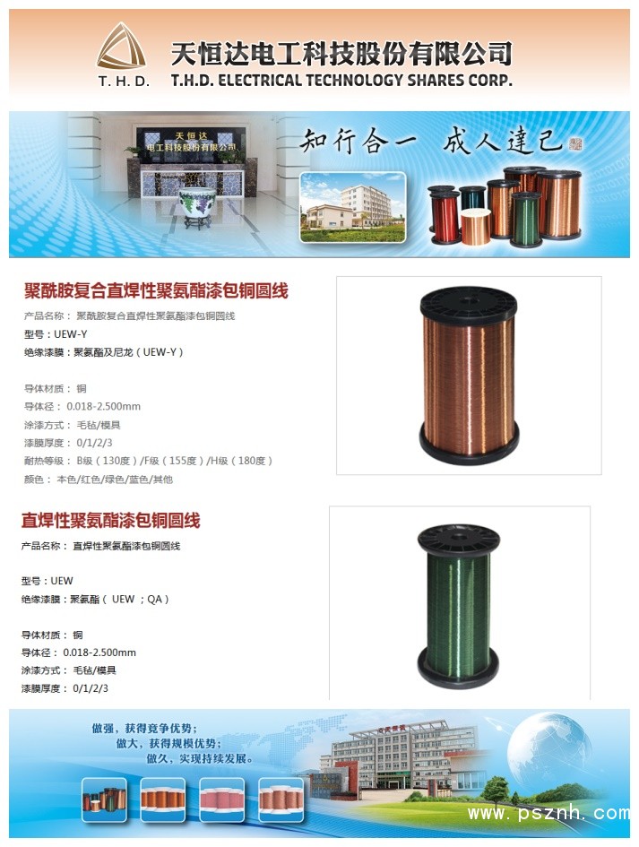 天恒達電工科技股份有限公司 直焊性聚氨酯漆包銅圓線 聚酰胺酰亞胺復合聚酯亞胺(聚酯)漆包銅圓線點擊:894 查看原圖![]() ![]() ![]() 天恒達電工科技股份有限公司