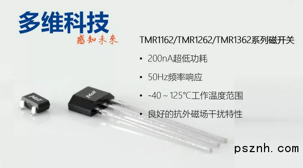 中國江蘇省張家港市2018年8月9日電 江蘇多維科技有限公司(MultiDimension Technology Co., Ltd., MDT)日前推出納安級超低功耗、高頻率響應(yīng)和寬溫區(qū)的TMR1162/TMR1262/TMR1362系列磁開關(guān)傳感器,其主要特點包括,200nA超低功耗,50Hz頻率響應(yīng),-40~125℃的工作溫度范圍,良好的抗外磁場干擾特性,SOT-23或TO-92或LGA封裝。