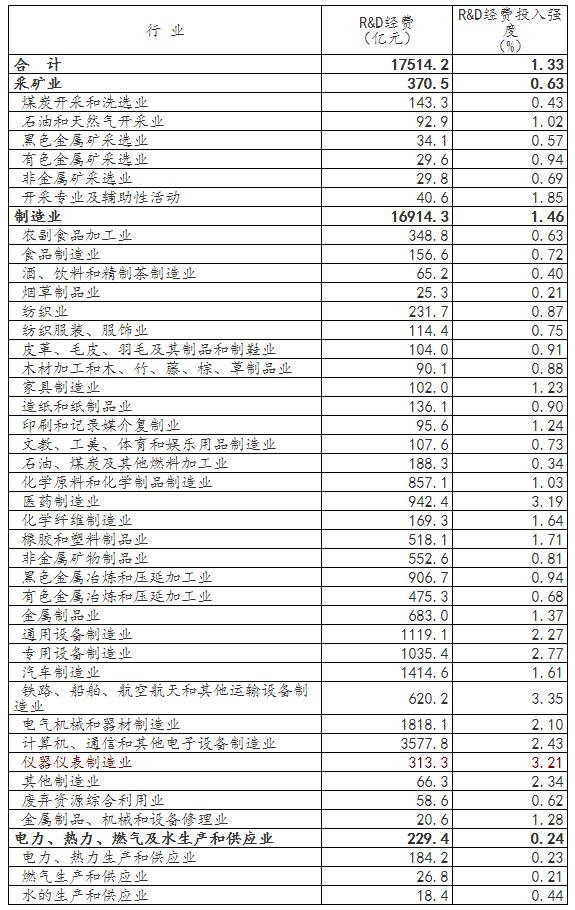 *2021年分行業(yè)規(guī)模以上工業(yè)企業(yè)研究與試驗(yàn)發(fā)展(R&D)經(jīng)費(fèi)情況