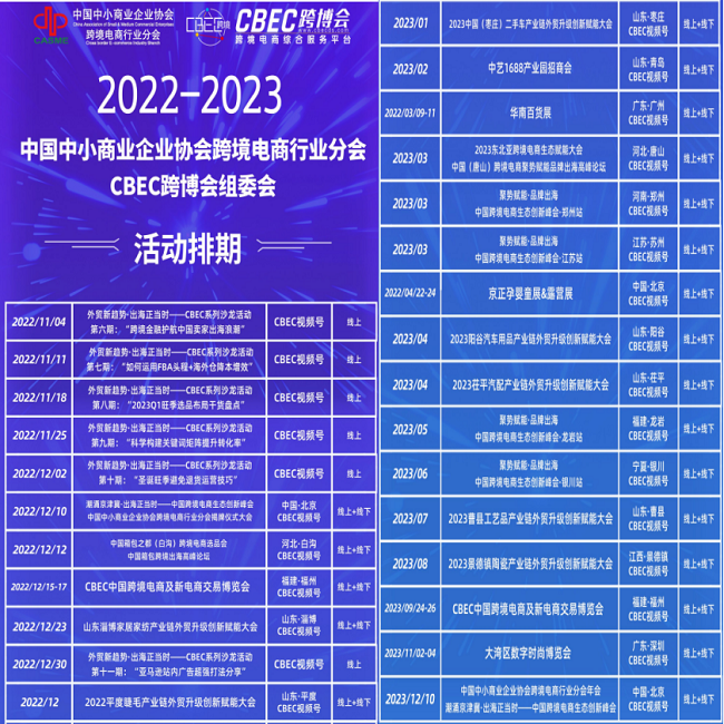 為更好地服務(wù)廣大參會代表及分會會員企業(yè),推動跨境電商行業(yè)深層次、多方位、多元化的交流與合作,大會組委會將定期舉辦“外貿(mào)新趨勢·出海正當(dāng)時”CBEC系列線上直播活動、“局勢賦能·品牌出?!笨缇畴娚躺鷳B(tài)創(chuàng)新峰會線下論壇,以及走進(jìn)產(chǎn)業(yè)帶賦能活動,為跨境電商行業(yè)發(fā)展注入全新動能與活力。