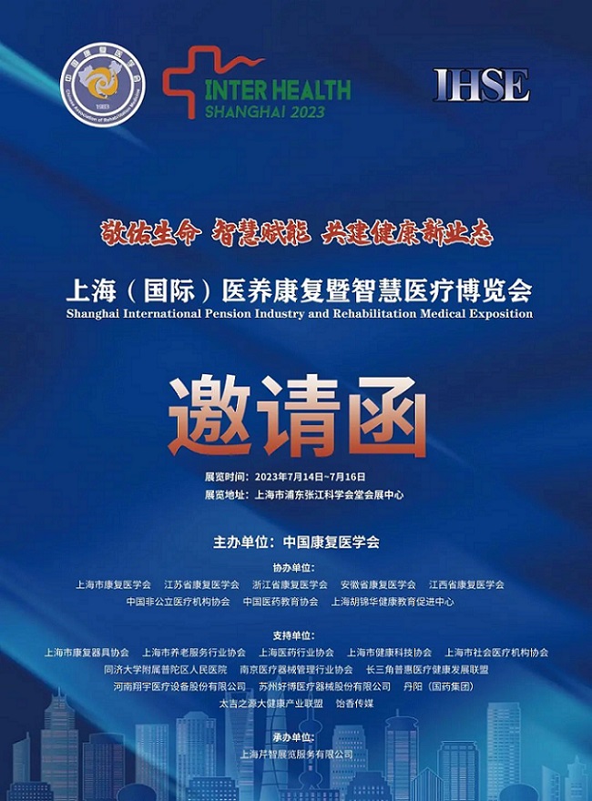 大健康、大趨勢、大事業(yè)。今天的健康產(chǎn)業(yè)站在了一個新的歷史大健康起點上。今天的康復(fù),正在成為各類人才大有可為、大有作為的康復(fù)熱土,為助力打造與城市地位相匹配,中國一流、世界先進的全民健康體系,由中國康復(fù)醫(yī)學(xué)會主辦,上海市康復(fù)醫(yī)學(xué)會、江蘇省康復(fù)醫(yī)學(xué)會、浙江省康復(fù)醫(yī)學(xué)會、安徽省康復(fù)醫(yī)學(xué)會、江西省康復(fù)醫(yī)學(xué)會聯(lián)合協(xié)辦的“2023上海(國際)醫(yī)養(yǎng)康復(fù)暨智慧醫(yī)療博覽會” (以 下簡稱“上??挡? 將于2023年7月14日-16日在上海市張江科學(xué)會堂會展中心舉辦。博覽會以“敬佑生命 智慧賦能 共建健康新業(yè)態(tài)”為主題,全面會聚國 內(nèi)外知名專家,圍繞“智慧醫(yī)療、醫(yī)養(yǎng)康復(fù)、智慧養(yǎng)老、體育健康” 等產(chǎn)業(yè)推動長三角地區(qū)生命健康技術(shù)進一步融合,形成高質(zhì)量發(fā)展的區(qū)域引領(lǐng)。