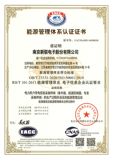新聯(lián)電子用電信息采集系列終端獲得能源管理體系認(rèn)證