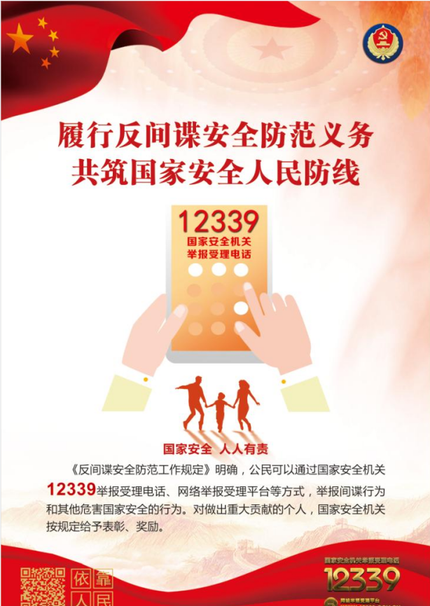 11月1日,是《中華人民共和國反間諜法》頒布實施八周年紀念日。反間諜法是我國國家安全法律制度體系的重要組成部分,國家安全人人有責,既需要人人參與,也必須人人負責、人人盡責。