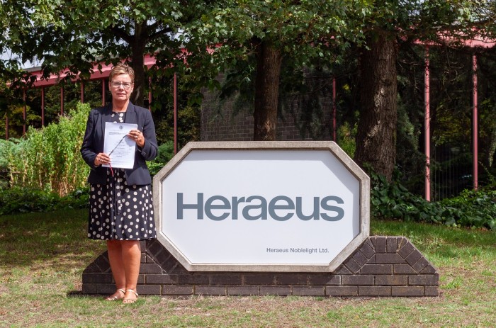 賀利氏特種光源有限公司英國總經(jīng)理Debbie Playle女士手拿判決書