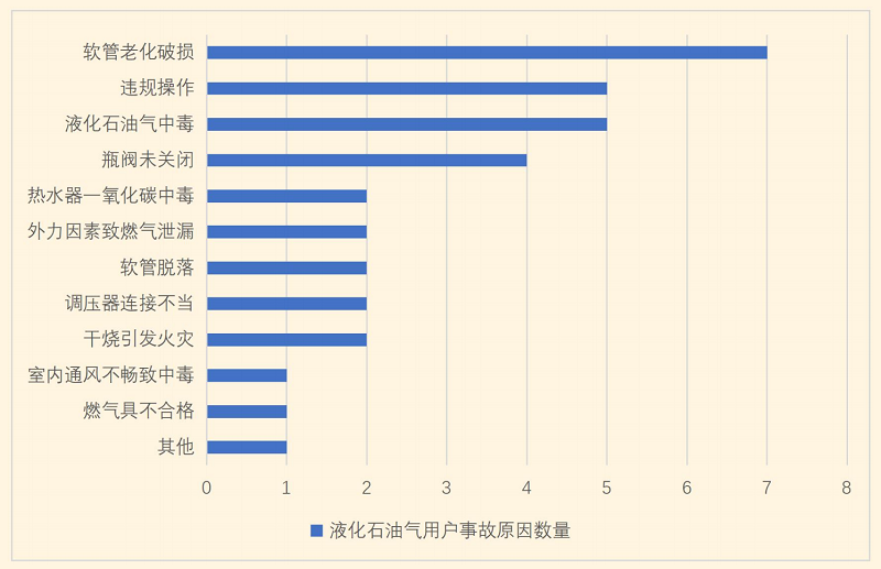 “報(bào)告”顯示(見上圖),2023上半年造成液化石油氣用戶事故最多的因素為:軟管老化破損、違規(guī)操作、液化石油氣中毒、瓶閥未關(guān)閉,其中軟管老化破損排第一位,這與液化石油氣瓶需要反復(fù)充裝、換瓶,軟管維護(hù)缺失等有很大關(guān)系。
