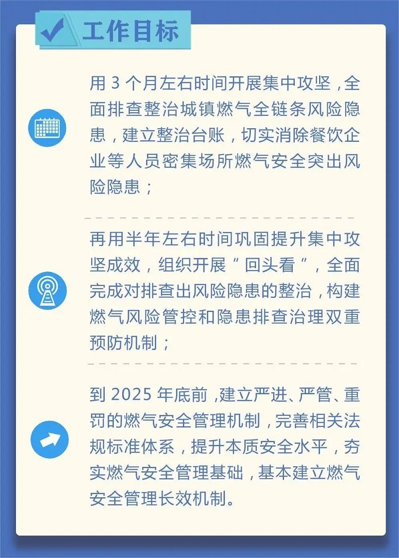 近日,國(guó)務(wù)院安委會(huì)印發(fā)《全國(guó)城鎮(zhèn)燃?xì)獍踩珜m?xiàng)整治工作方案》(以下簡(jiǎn)稱“方案”),迅速引發(fā)行業(yè)密切關(guān)注。“方案”工作將按集中攻堅(jiān)、全面鞏固提升、建立長(zhǎng)效機(jī)制三個(gè)階段遞進(jìn)式開展。