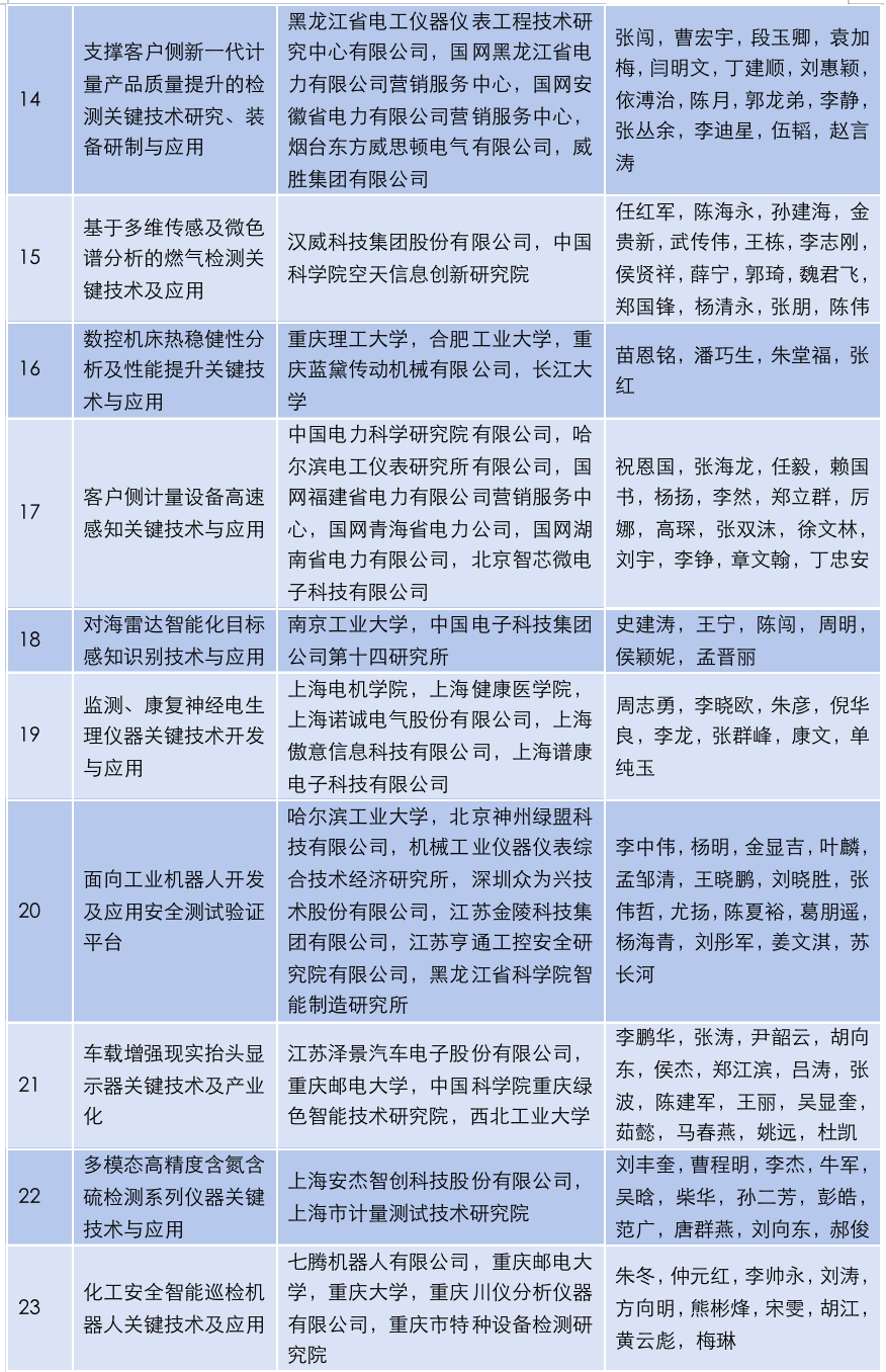 中國儀器儀表學會科學技術獎評審委員會按照《中國儀器儀表學會科學技術獎勵辦法》之規(guī)定對2023年科學技術獎申報項目進行了嚴格認真的形式審查、初評、會評,共評選出一等獎16項,其中科技進步獎10項,技術發(fā)明獎6項;二等獎44項,其中科技進步獎40項,技術發(fā)明獎4項;三等獎19項,其中科技進步獎18項,技術發(fā)明獎1項;青年科技人才獎6人;科技進步獎(創(chuàng)新團隊)2個。現(xiàn)對獲獎名單公布如下: