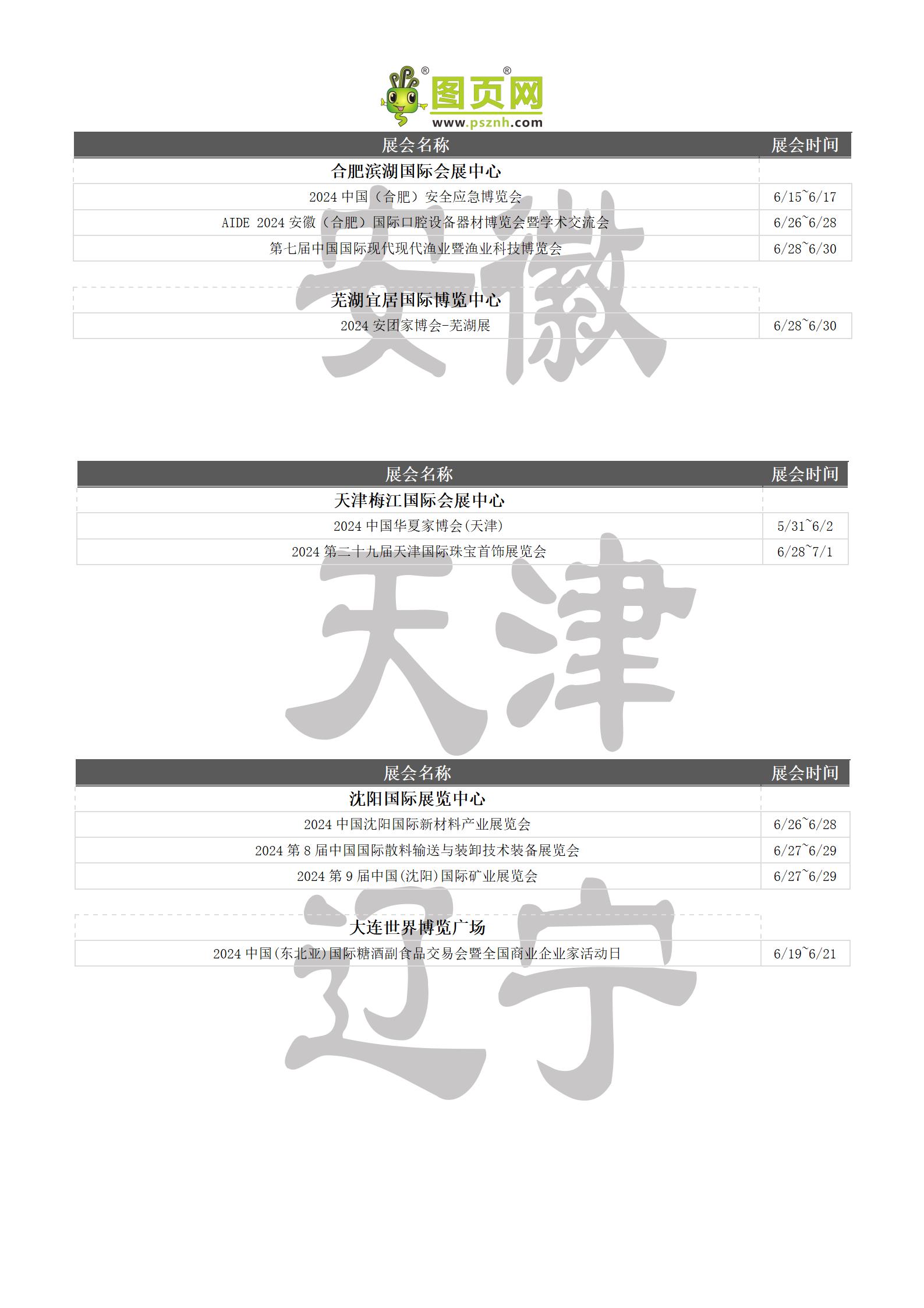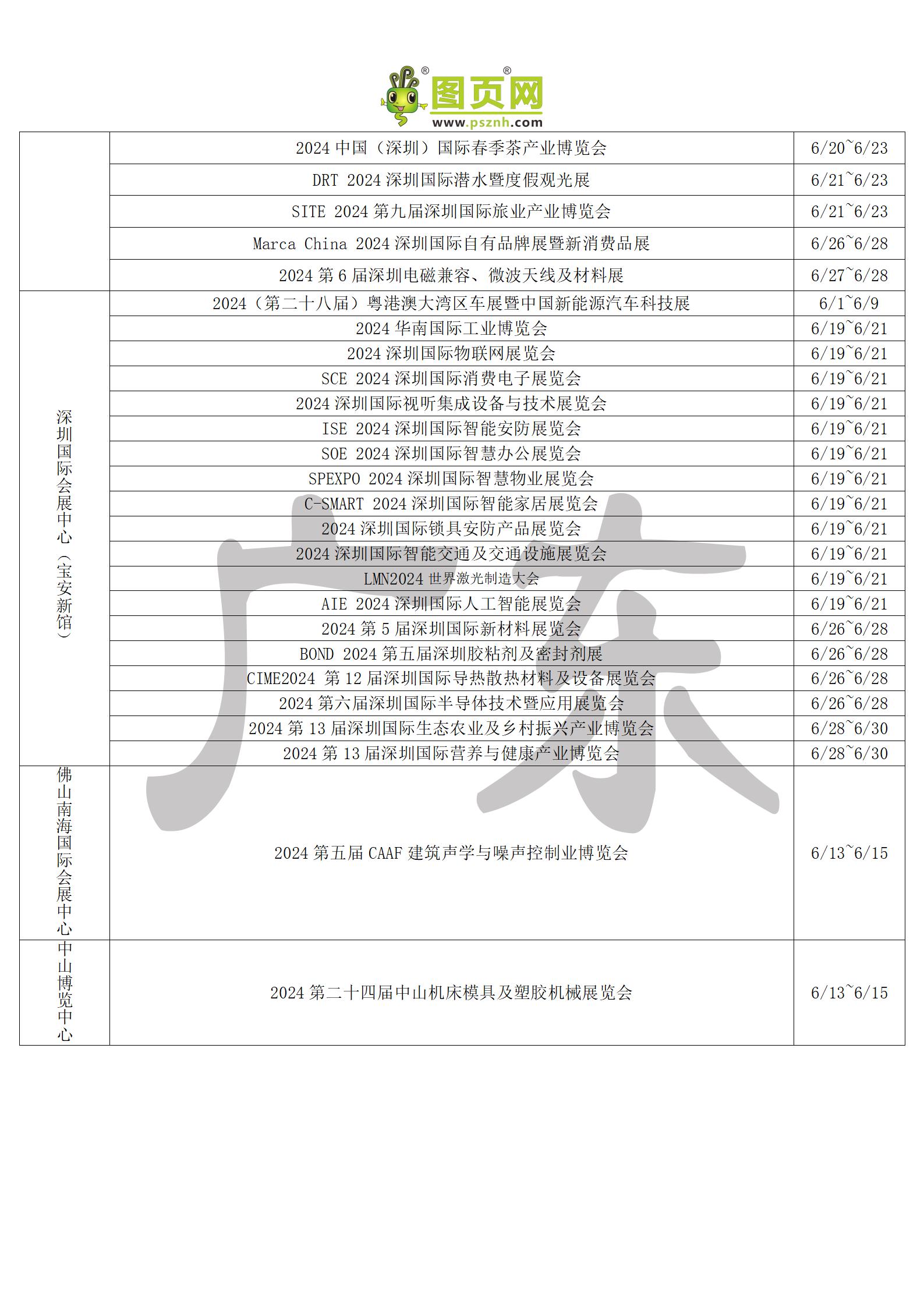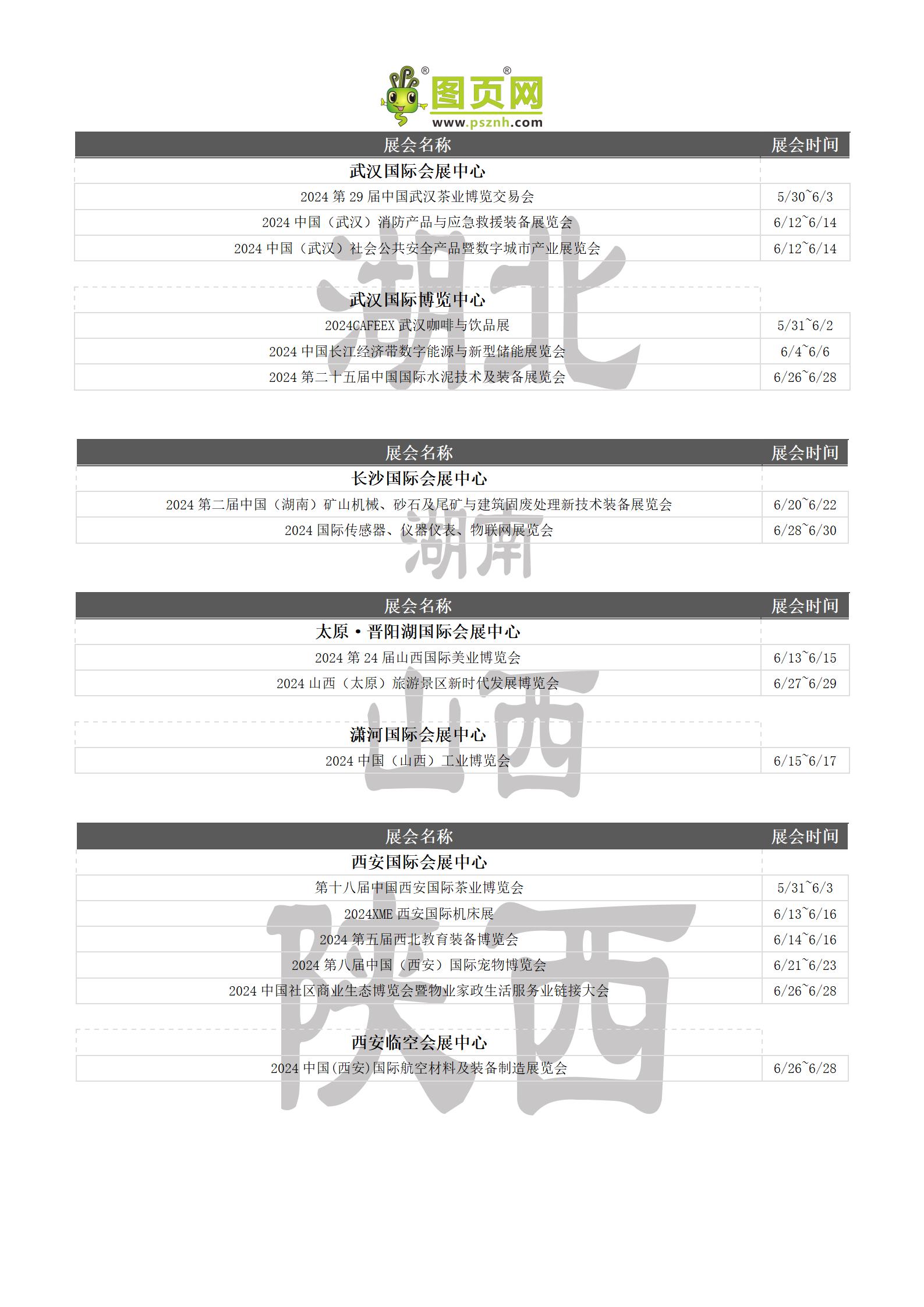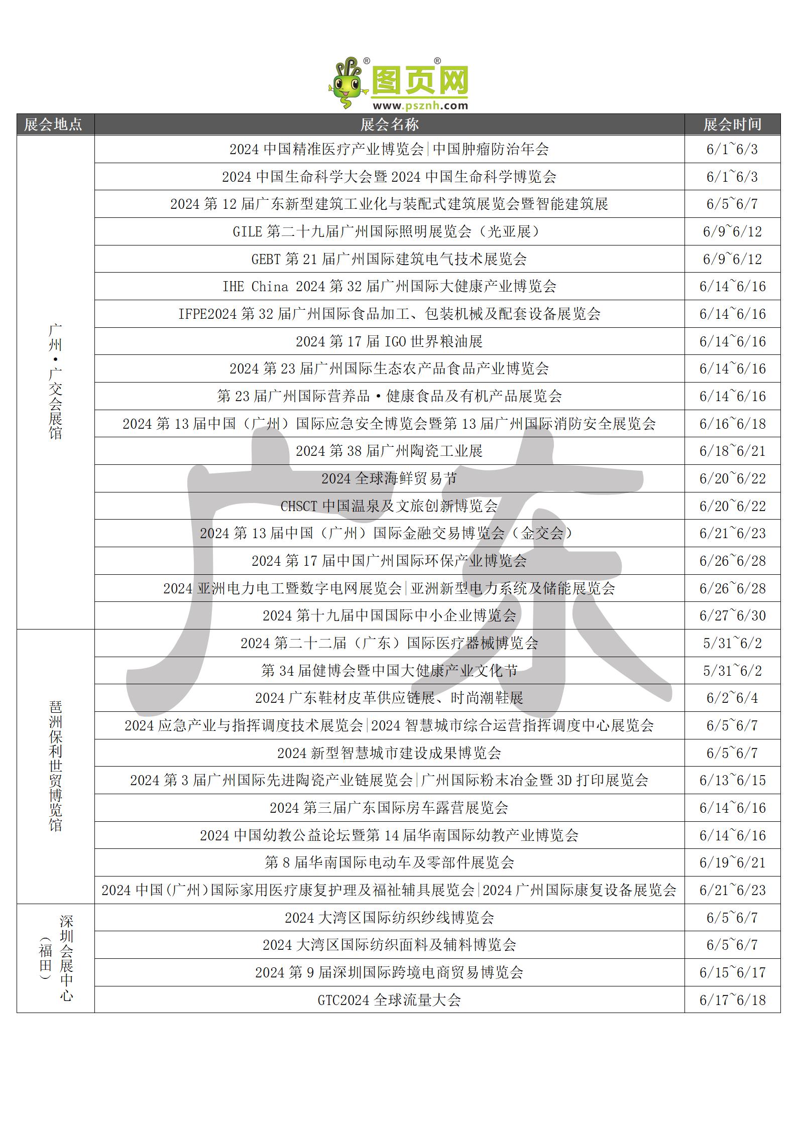2024年6月全國展會排期表 詳盡齊全 展會超300+