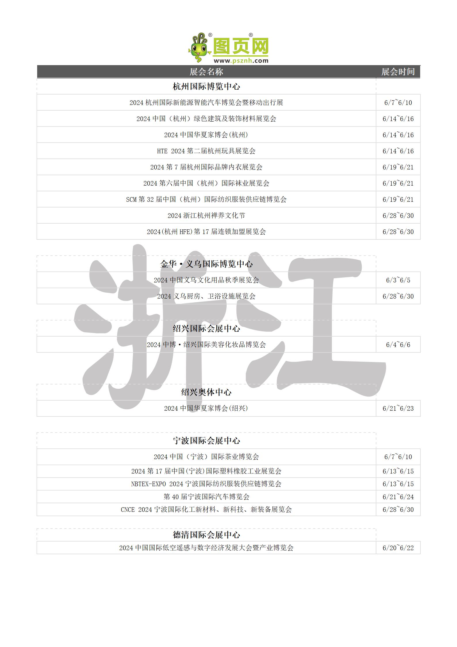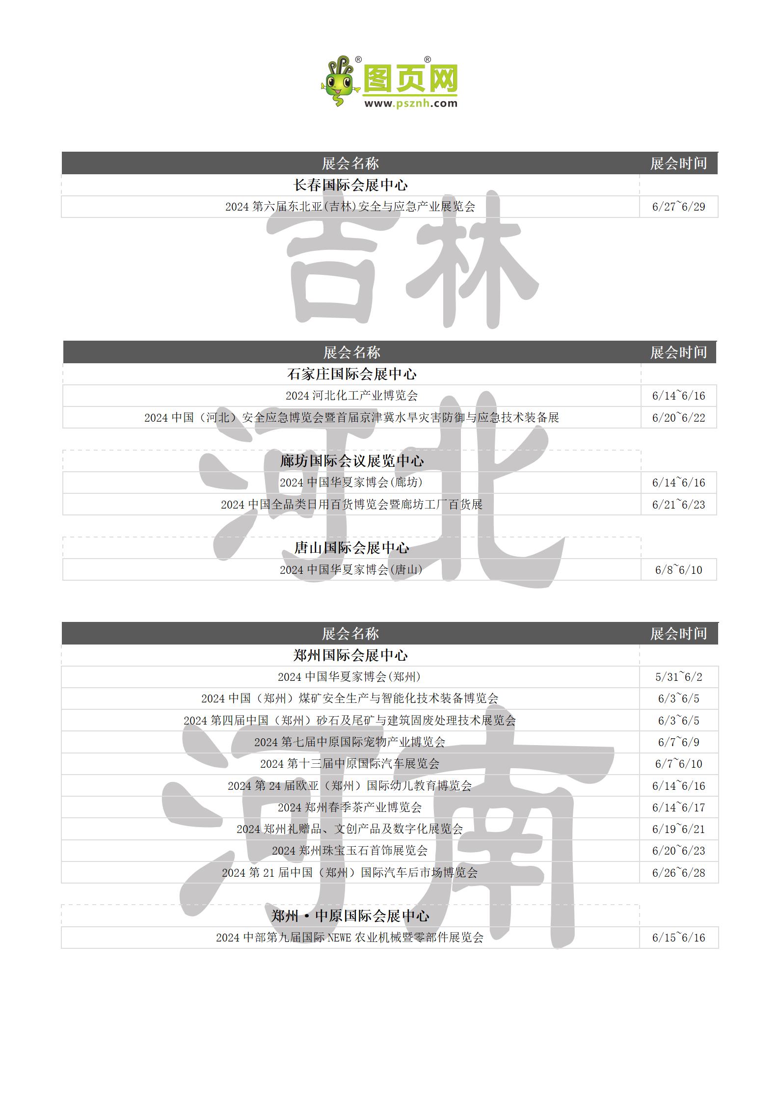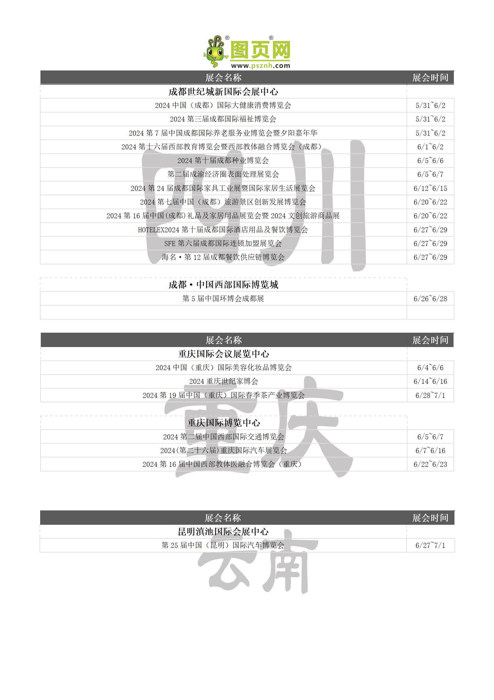 2024年6月全國展會排期表 詳盡齊全 展會超300+