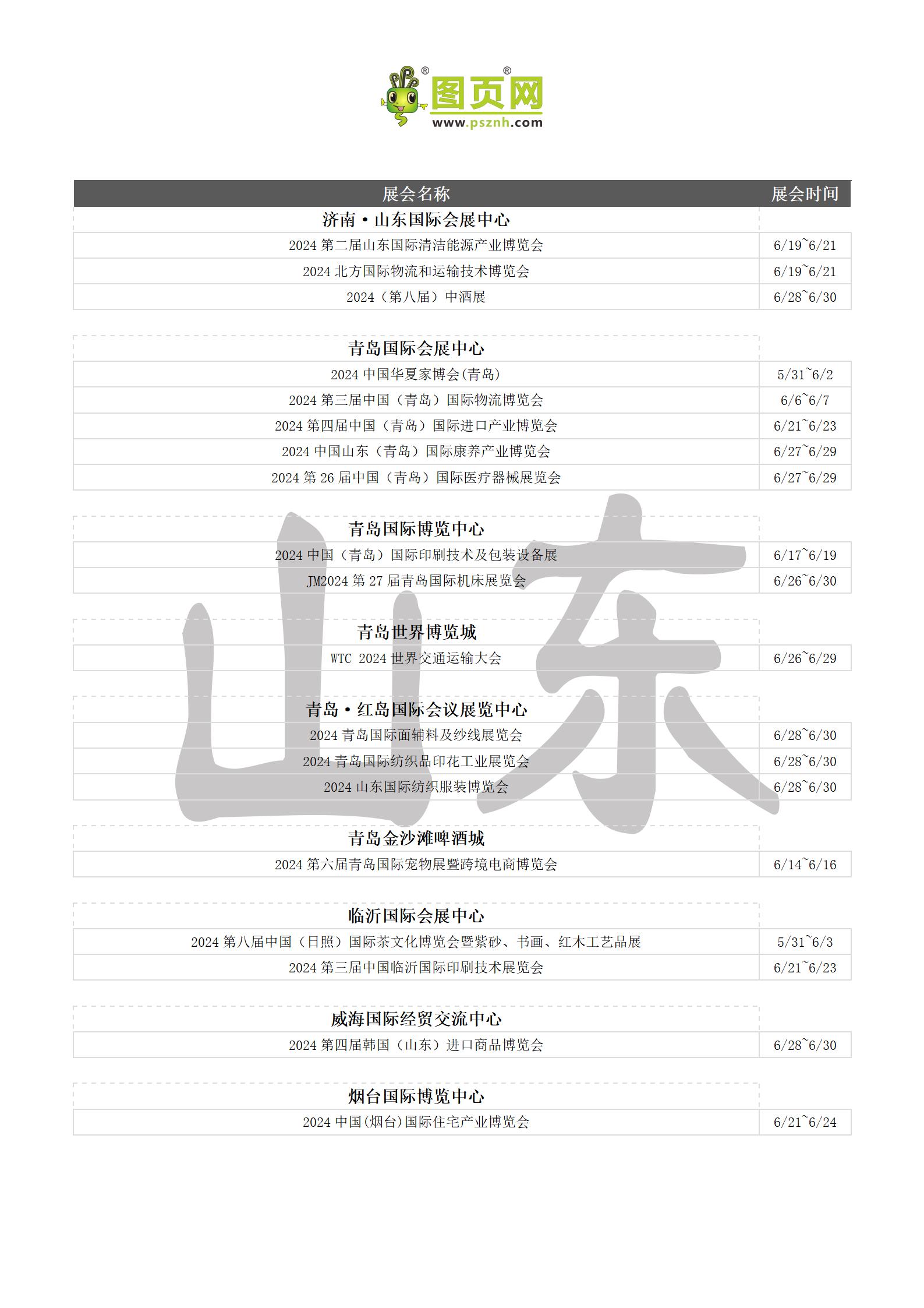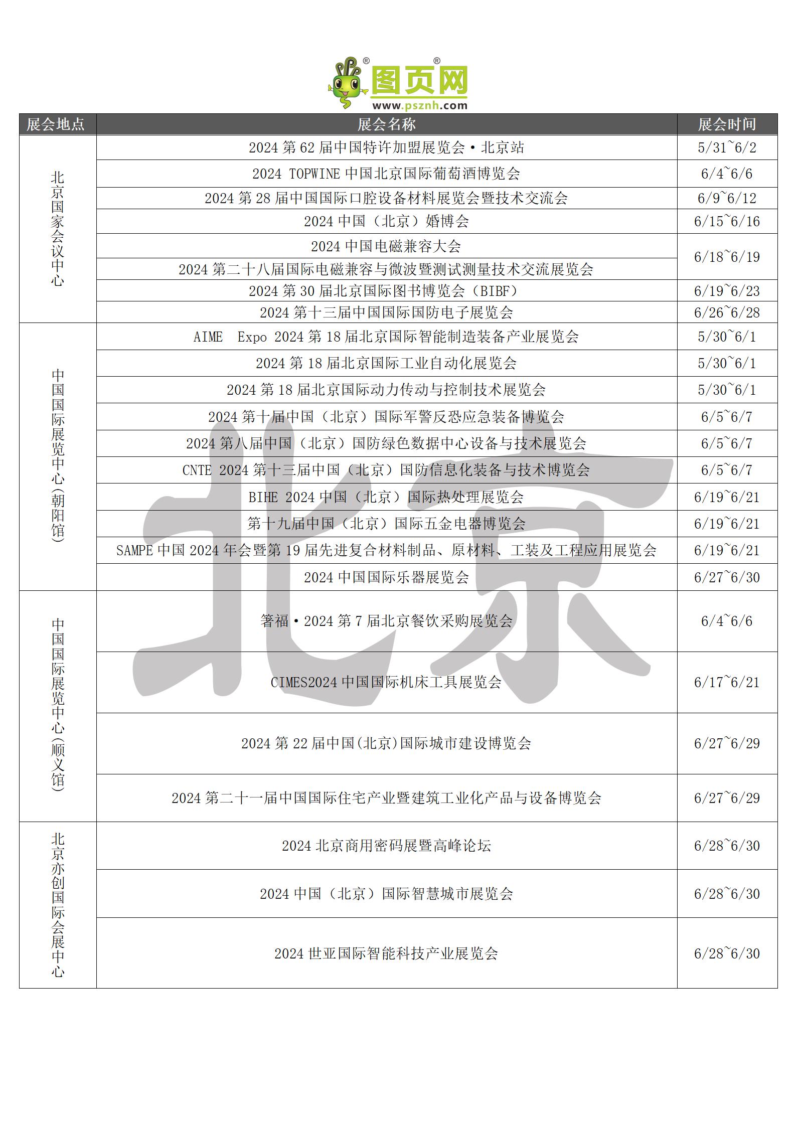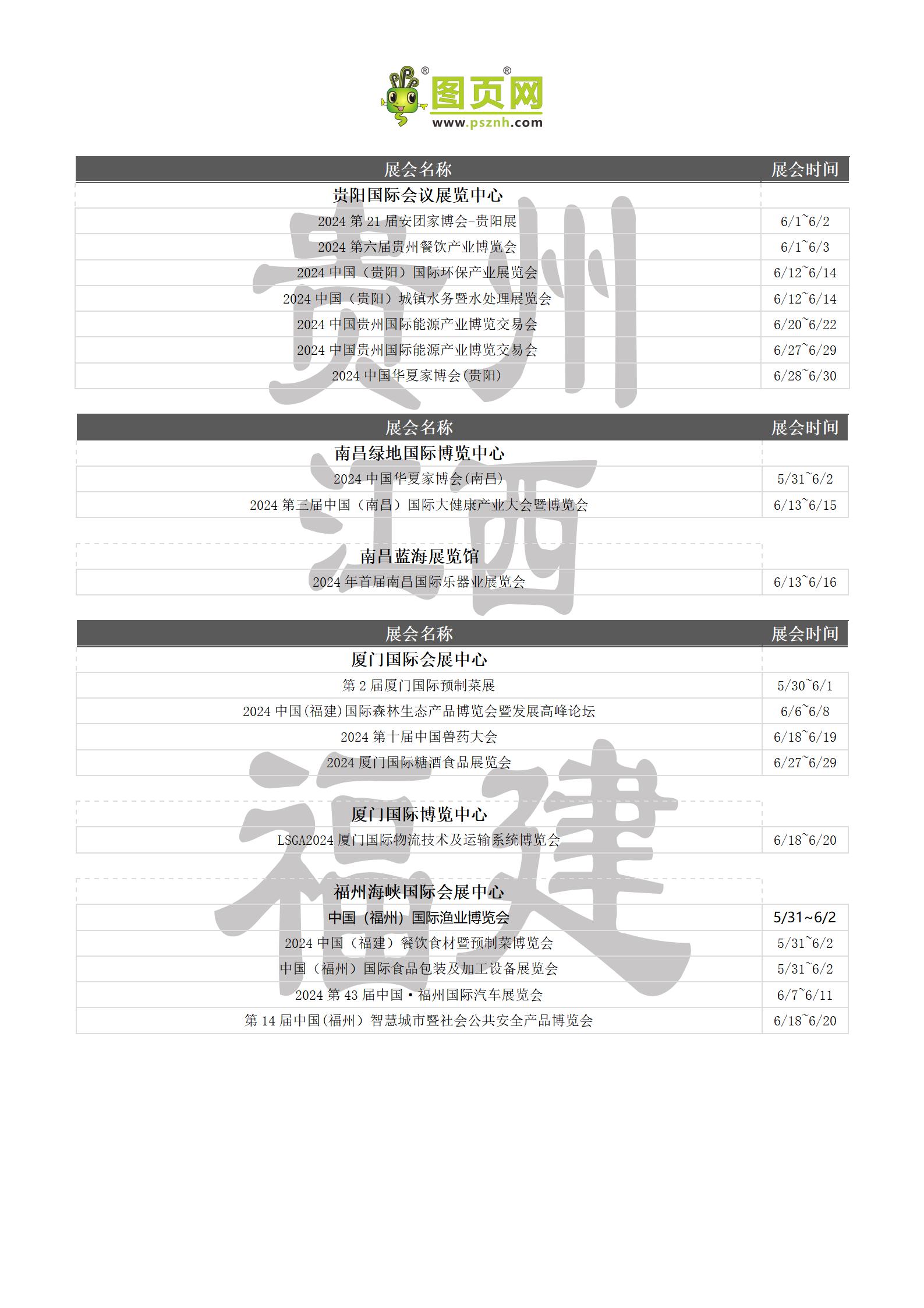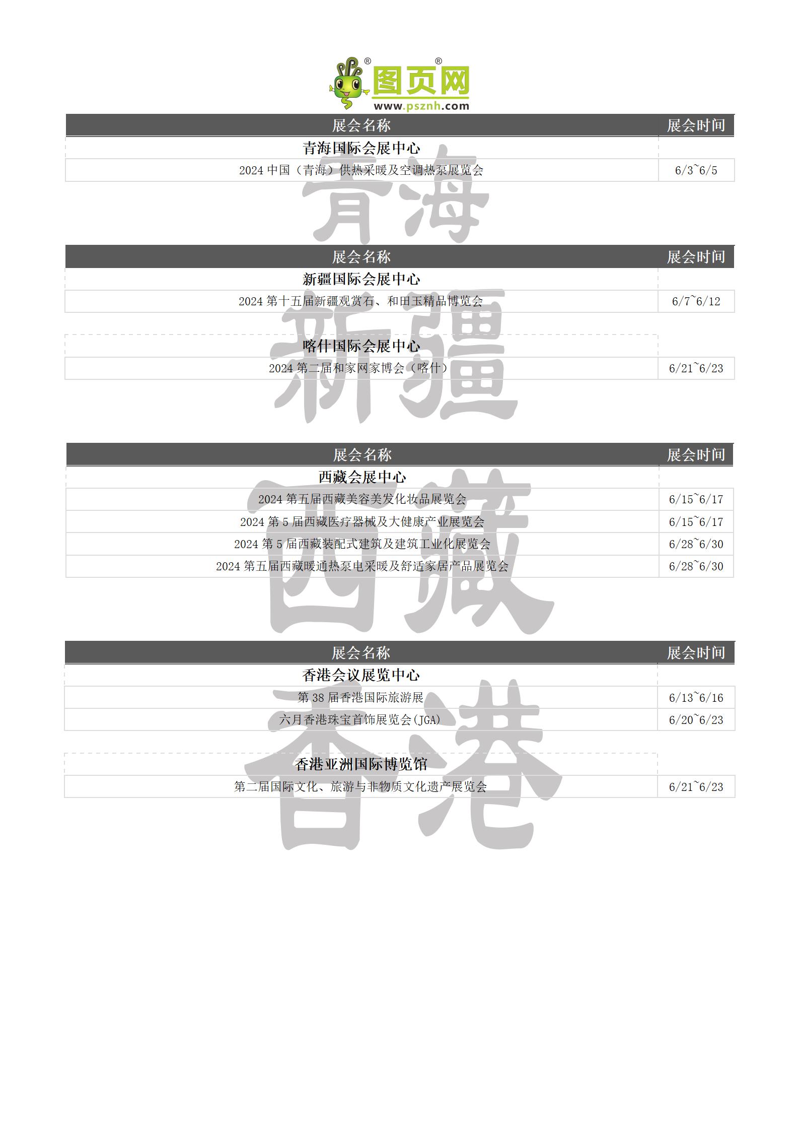2024年6月全國展會排期表 詳盡齊全 展會超300+