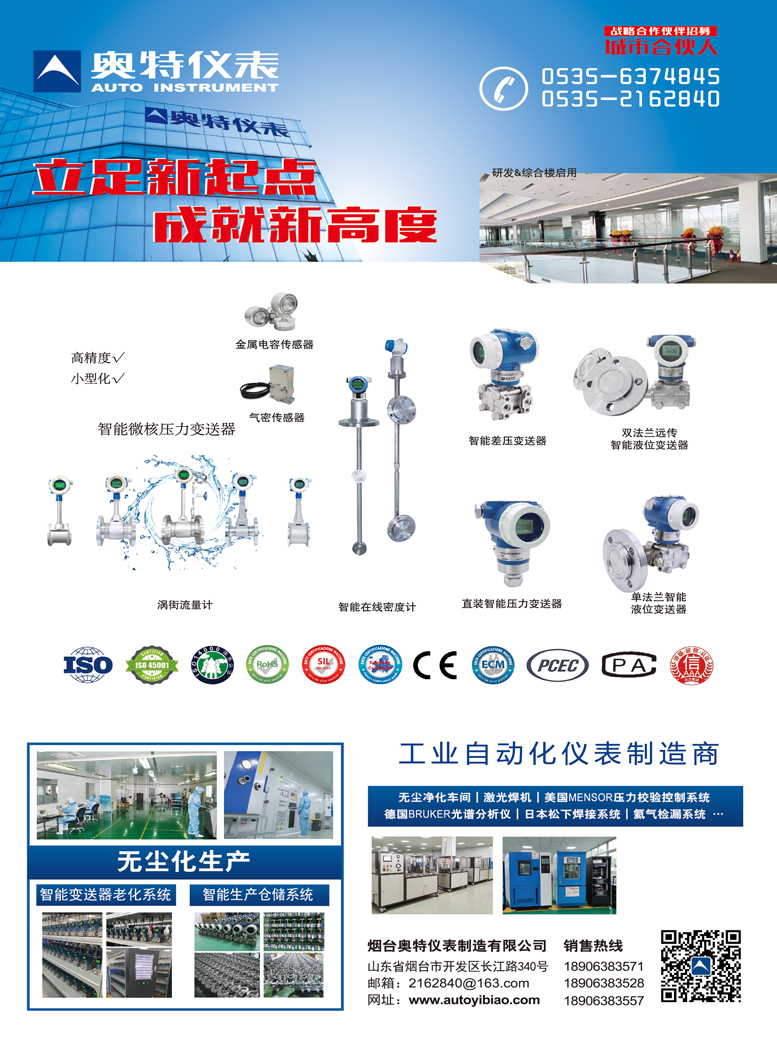 煙臺奧特儀表制造有限公司,攜手《儀表與測量控制》雜志,將共同開啟更加輝煌的未來!**我們期待與更多優(yōu)秀的儀器儀表企業(yè)攜手,共同促進(jìn)行業(yè)的發(fā)展與合作,為全球客戶提供更加優(yōu)質(zhì)的產(chǎn)品和服務(wù)!