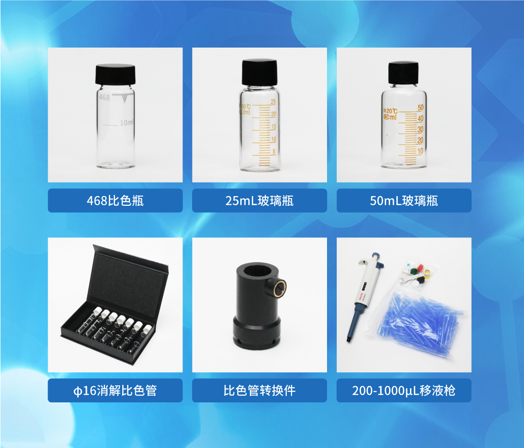 標配25mm比色瓶和16mm消解比色管,滿足不同的比色方式和消解需求