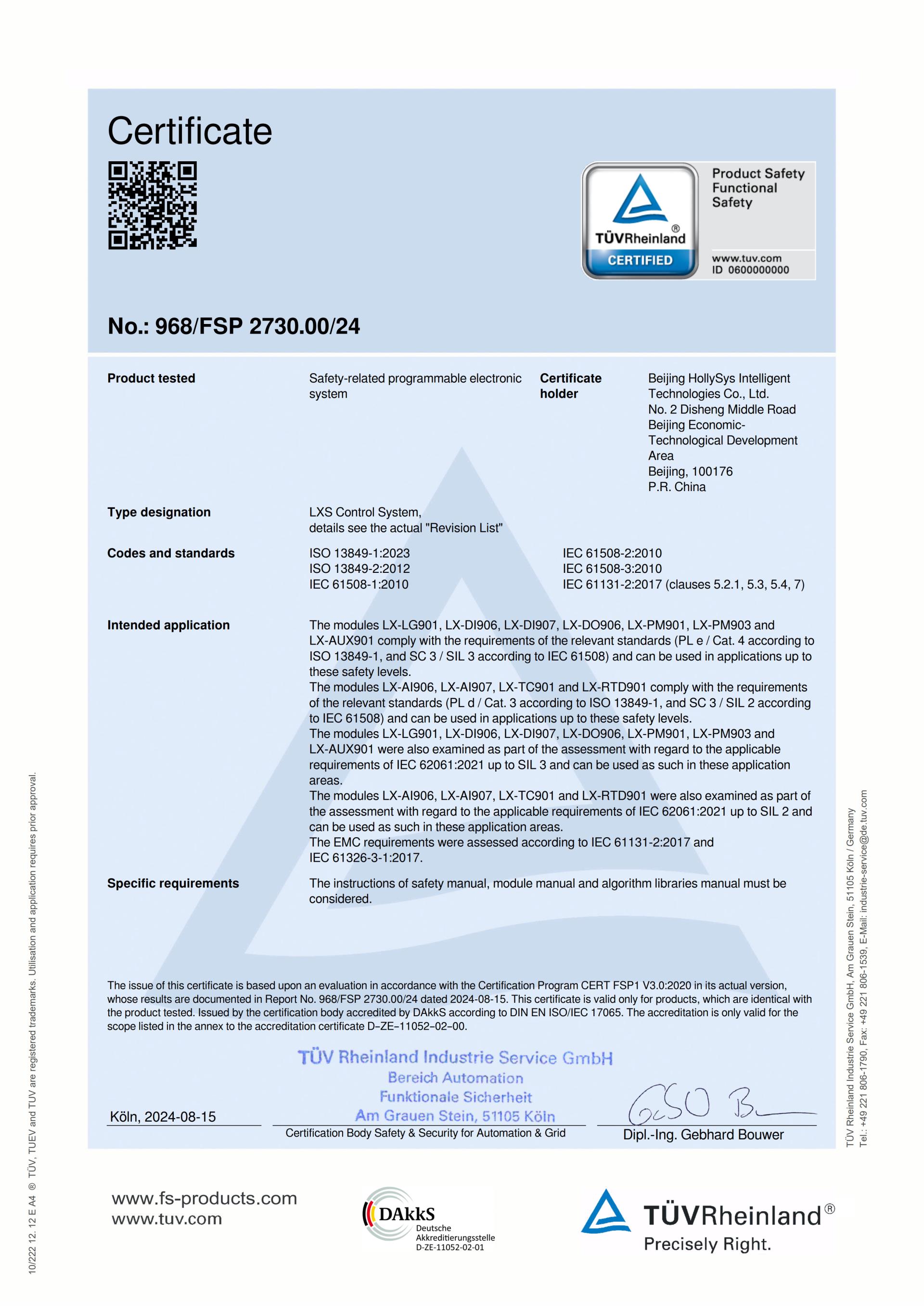 和利時(shí)LXS產(chǎn)品榮耀斬獲德國萊茵TüV功能安全產(chǎn)品認(rèn)證,引領(lǐng)安全控制新紀(jì)元
