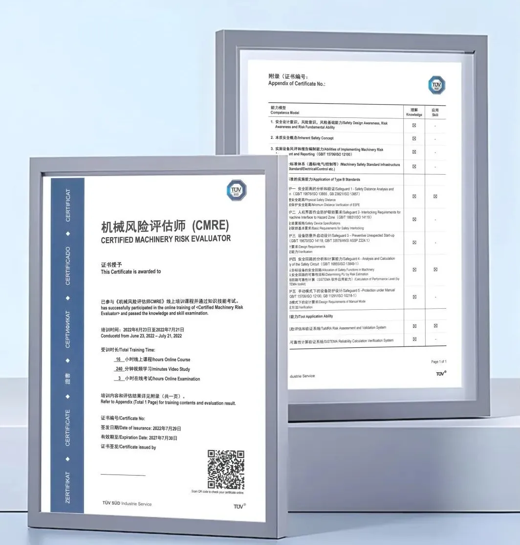 在完成了課程學(xué)習(xí)后,參與并通過考試的竹子們將獲得由TüV南德頒發(fā)的機(jī)械風(fēng)險評估師(CMRE)認(rèn)證證書。