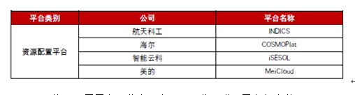 資源配置平臺一覽表(來源:工業(yè)互聯(lián)網(wǎng)平臺白皮書)