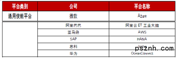 通用使能平臺主要提供云計算、物聯(lián)網(wǎng)、大數(shù)據(jù)的基礎性、通用性服務,主要由ICT 企業(yè)提供。其中部分平臺側重于云服務的數(shù)據(jù)計算及存儲,如微軟的Azure、SAP HANA、亞馬遜的AWS以及我國的阿里云、騰訊云等,部分平臺側重于物聯(lián)網(wǎng)的設備連接管理,如思科的Jasper、華為的OceanConnect 等。這類平臺為資產(chǎn)優(yōu)化及資源配置型工業(yè)互聯(lián)網(wǎng)提供技術支撐,如GE Predix 就部署于微軟的Azure 平臺,此外,通用使能平臺還廣泛應用于金融、娛樂、生活服務等各行業(yè)。