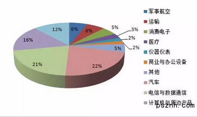 1:中國連接器市場已經占據(jù)全球30%左右連接器市場,但是我國連接器還主要以中低端為主,高端連接器占比較低,從全球來看,汽車連接器是最大應用市場。根據(jù)統(tǒng)計,汽車市場應用是全球連接器最大的應用市長,占比達到22.2%。其次是電信與數(shù)據(jù)通信,約有21%,另外計算機與工業(yè)分別占比達到16%、12%。