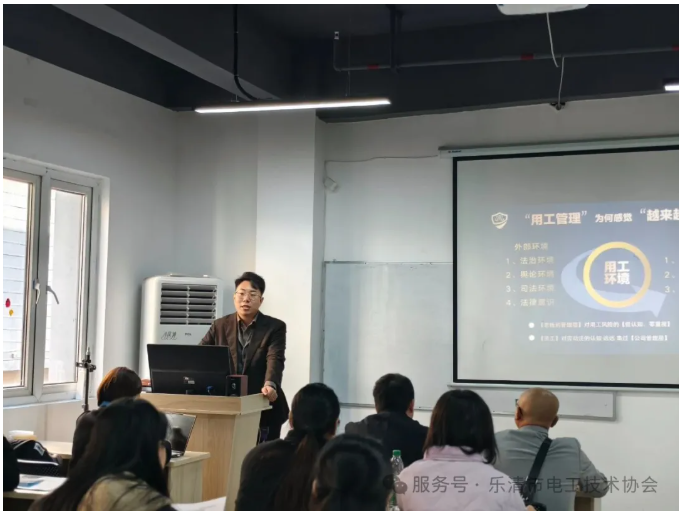 11月30日下午,樂清市學信教育教室一內(nèi),一場以“破解企業(yè)用工難題”為主題的公益培訓暖心開啟,如光照亮行業(yè)前行路。這場由樂清市電工技術協(xié)會精心籌備的學術盛宴,誠意與智慧滿溢,吸引30余位協(xié)會同仁奔赴而來。在盧其亮會長引領下,眾人懷揣提升企業(yè)用工管理水平之愿,齊聚共探合規(guī)用工密碼。