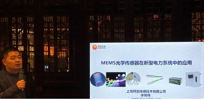 上海拜安傳感技術有限公司智能事業(yè)部李偉偉展示了《MEMS 光學傳感器在新型電力系統(tǒng)中的應用》。MEMS 光學傳感器憑借小型化、低功耗、高集成度的優(yōu)勢,已在特高壓輸變電設備絕緣監(jiān)測、新能源發(fā)電功率預測、儲能電站氣體監(jiān)測等場景實現(xiàn)規(guī)?;瘧?,成為新型電力系統(tǒng)傳感技術升級的重要方向。