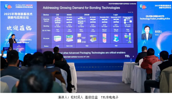Technology Fusion, enabling AI Era(TEL東電電子)高級(jí)總監(jiān)松村賢人(Norito Matsumura)發(fā)表了題為《技術(shù)融合賦能AI時(shí)代》精彩演講:TEL 技術(shù)賦能 AI 的核心優(yōu)勢(shì)---TEL 是全球少數(shù)能提供光刻、刻蝕、沉積、清洗四大核心工藝設(shè)備的供應(yīng)商,為 AI 芯片制造商提供一站式解決方案,降低技術(shù)整合成本,縮短上市時(shí)間。