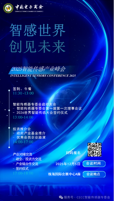 025年12月5日,中國電子商會智能傳感器專業(yè)委員會第一屆一次理事會會議在熱烈氛圍中圓滿召開。本次會議匯聚了智能傳感器領(lǐng)域的頂尖專家、企業(yè)領(lǐng)袖、知名投資機構(gòu)以及多地政府領(lǐng)導出席,共同見證了這一行業(yè)重要時刻。