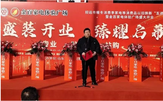 1218日上午, “招遠(yuǎn)市暖冬消費(fèi)季家電等消費(fèi)品以舊換新五進(jìn)活動(dòng)暨金百家電體驗(yàn)廣場(chǎng)盛大開業(yè)同步煥新啟幕。協(xié)會(huì)會(huì)長(zhǎng)田占軍、副秘書長(zhǎng)常雪明與海爾、海信、美的等知名家電品牌代表、山東金都百貨股份有限公司負(fù)責(zé)人及廣大消費(fèi)者齊聚一堂,共同見(jiàn)證這場(chǎng)聚焦民生需求、激活消費(fèi)潛力的行業(yè)盛事。