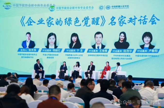 大會(huì)還設(shè)置了“《企業(yè)家的綠色覺醒》名家對(duì)話會(huì)”與“零碳:爭分奪秒閃電路演”環(huán)節(jié)。該環(huán)節(jié)由中國節(jié)能協(xié)會(huì)碳中和專業(yè)委員會(huì)副秘書長張京良主持,邀請(qǐng)中金公司董事總經(jīng)理潘偉、中國質(zhì)量認(rèn)證中心總監(jiān)及雙碳研究院院長于潔、深圳綠色交易所市場(chǎng)總監(jiān)王維春、千年舟新材料技集團(tuán)股份有限公司執(zhí)行總經(jīng)理田茂華、海南深藍(lán)先河科技有限公司董事長姚鑫、中國信通院泰爾終端副總工盧春陽等多位嘉賓,圍繞企業(yè)家精神、綠色金融工具、市場(chǎng)機(jī)制創(chuàng)新、產(chǎn)業(yè)轉(zhuǎn)型實(shí)踐等維度,深入探討了企業(yè)綠色轉(zhuǎn)型的內(nèi)在驅(qū)動(dòng)力與戰(zhàn)略實(shí)施路徑。