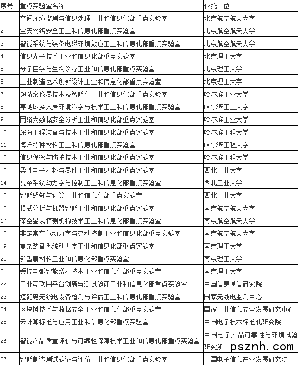 2018年工業(yè)和信息化部重點實驗室擬認定名單