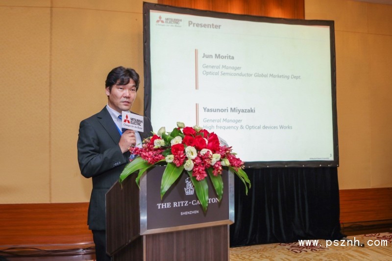 三菱電機光器件全球市場部總經(jīng)理盛田淳先生、三菱電機高頻光器件制作所總經(jīng)理宮崎泰典先生、大中國區(qū)三菱電機半導(dǎo)體技術(shù)副總經(jīng)理庵原晉先生、大中國區(qū)三菱電機半導(dǎo)體高頻光器件應(yīng)用技術(shù)課經(jīng)理王煒先生、大中國區(qū)三菱電機半導(dǎo)體公關(guān)宣傳專員葛翌小姐蒞臨此次發(fā)布會。