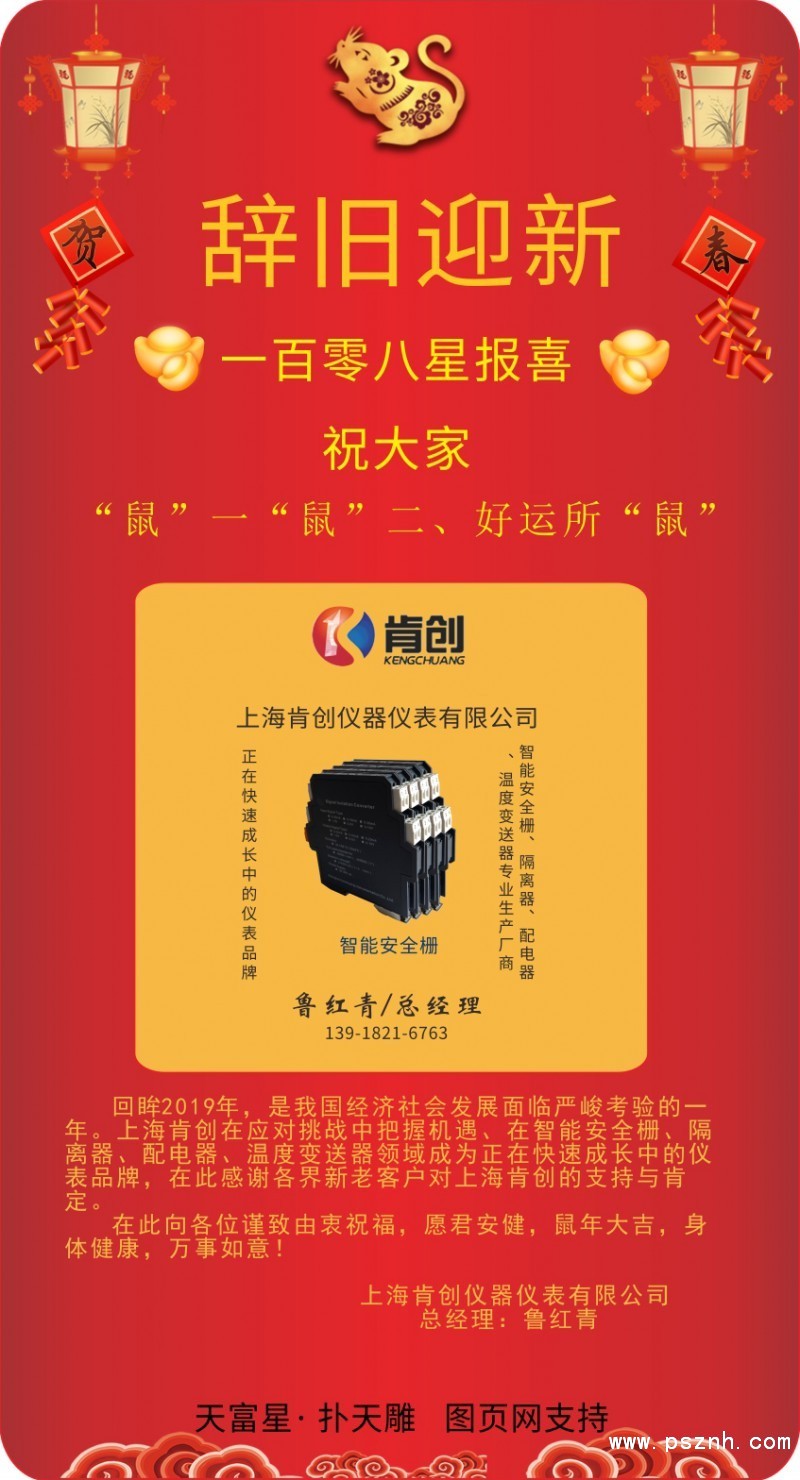 在此感謝各界新老客戶對(duì)上??蟿?chuàng)的支持與肯定。在此向各位謹(jǐn)致由衷祝福,愿君安健,鼠年大吉,身體健康,萬(wàn)事如意!