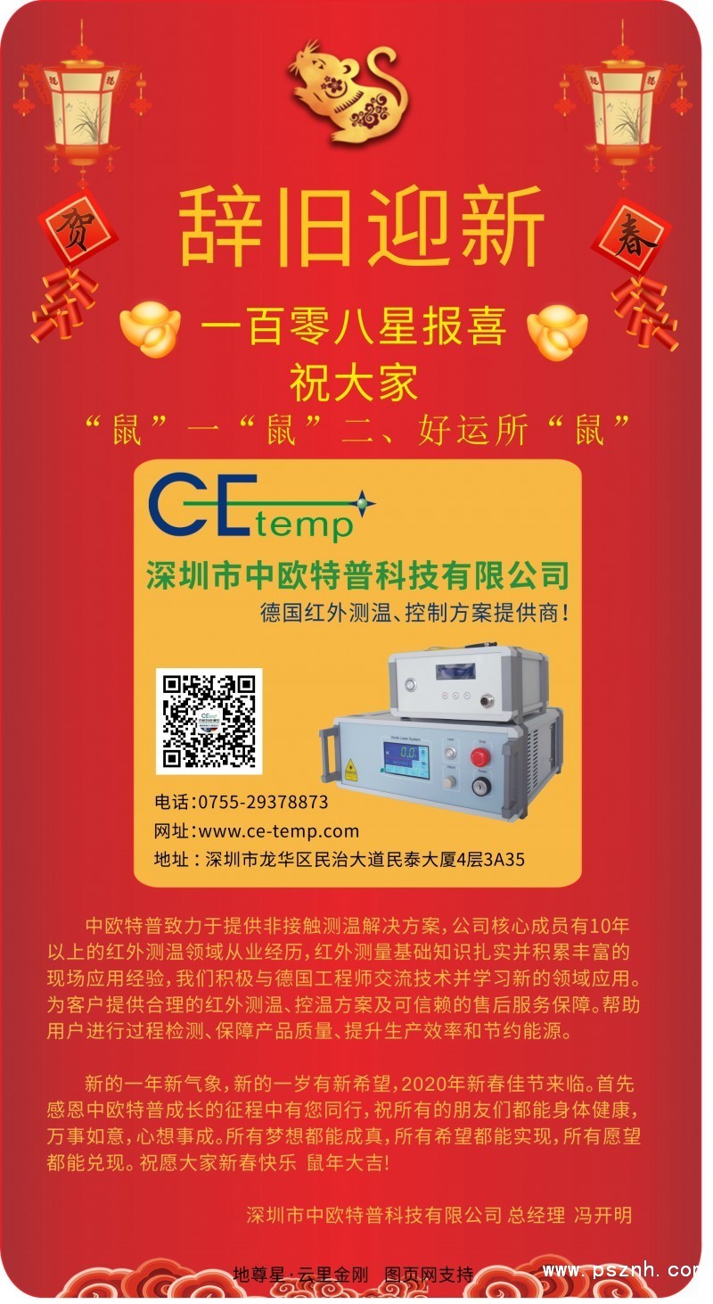 新的一年新氣象,新的一歲有新希望,2020年新春佳節(jié)來臨。首先感恩中歐特普成長的征程中有您同行,祝所有的朋友們都能身體健康,萬事如意,心想事成。所有夢想都能成真,所有希望都能實(shí)現(xiàn),所有愿望都能兌現(xiàn)。 祝愿大家新春快樂 鼠年大吉!