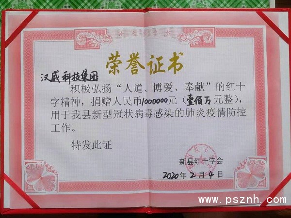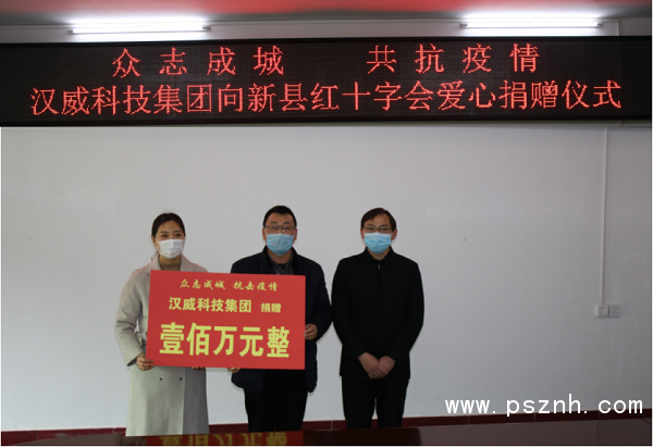 2月3日,漢威科技集團(tuán)股份有限公司向信陽(yáng)新縣紅十字會(huì)捐贈(zèng)資金100萬(wàn)元,專項(xiàng)用于該地區(qū)購(gòu)買(mǎi)新型冠狀病毒肺炎急需的醫(yī)療物資及滿足該地區(qū)部分緊急現(xiàn)金需求,為保護(hù)革命老區(qū)人民群眾生命安全健康、為堅(jiān)決打贏疫情防控阻擊戰(zhàn)貢獻(xiàn)綿薄之力。