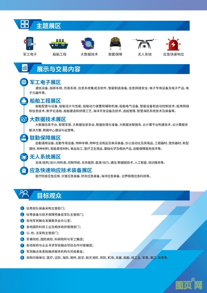 第二屆“軍交會”將于2020年11月18-20日在廣交會展館舉辦。本屆“軍交會”將聚焦應急快速響應技術裝備、軍工電子、船舶工程、大數(shù)據(jù)技術、聯(lián)勤保障及無人系統(tǒng)等六大領域,促進軍民兩用技術深度發(fā)展和雙向轉化,搭建供需雙方精準對接的交易平臺。