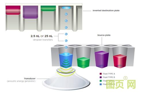 Echo采用聲波能量精準(zhǔn)地轉(zhuǎn)移液體(Acoustic Droplet Ejection,ADE),無需接觸和使用吸頭、噴嘴或?qū)Ч艿裙ぞ撸⒈WC每一個液滴都只有2.5nL或25nL,同時可實現(xiàn)動態(tài)液體分析(Dynamic Fluid Analysis,DFA),通過聲能判斷液體組成成分、液體高度,進(jìn)而計算向目標(biāo)板中轉(zhuǎn)移準(zhǔn)確體積所需的能量,實現(xiàn)準(zhǔn)確移液。Echo創(chuàng)新的聲波移液技術(shù),正在改變生命科學(xué)液體處理的格局,其無與倫比的速度、精度、準(zhǔn)確性和成本效益正在幫助世界各地的科學(xué)家實現(xiàn)更好的科學(xué)數(shù)據(jù)和結(jié)果。革命性的聲學(xué)移液技術(shù)正在改變實驗室的研究方式,從學(xué)術(shù)界到制藥界,從基礎(chǔ)生命科學(xué)到轉(zhuǎn)化醫(yī)學(xué)。
