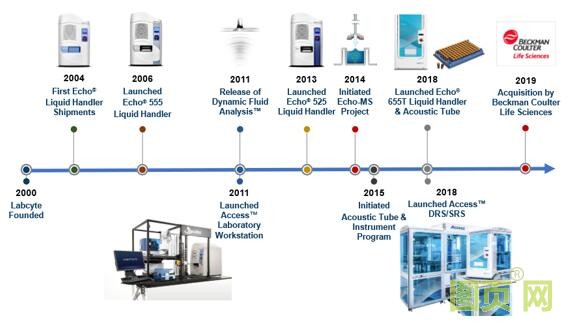 隨后,Echo也沒有停止腳步,2011年推出Access Laboratory Workstation全自動化處理系統(tǒng);2013年推出大液滴移液系統(tǒng)Echo525;2014年啟動Echo-MS項目,以實現(xiàn)Echo與質(zhì)譜的聯(lián)用;2015年推出Echo Combination Screen Software;2018年推出Echo600系列產(chǎn)品,實現(xiàn)更快、更準(zhǔn)的移液,并同時可以實現(xiàn)樣本庫管理;同年,推出Access Dual-Robot System (DRS)和Access Single-Robot System (SRS)全自動化整合系統(tǒng);并于2019年加入貝克曼庫爾特,成為其自動化產(chǎn)品線的一員,與貝克曼庫爾特自動化產(chǎn)品和Genomics試劑一起,為用戶提供更完整的解決方案。