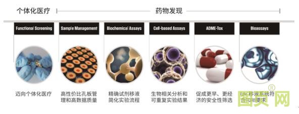 現(xiàn)代藥物發(fā)現(xiàn)涉及到藥物的潛在靶標(biāo)識別、化合物篩選、化合物優(yōu)化以親和力提高、選擇性(以減少潛在的副作用)、功效/效力和代謝穩(wěn)定性(增加半衰期)等。Echo移液系統(tǒng)因其納升級小體系移液能力,不僅可以建立更小的反應(yīng)體系,節(jié)省試劑成本,而且可以采用直接稀釋,無需進(jìn)行傳統(tǒng)的梯度稀釋,避免沿曲線傳遞誤差(殘留)的風(fēng)險,從而獲得更加準(zhǔn)確的實驗結(jié)果。因此,Echo可以促進(jìn)藥物發(fā)現(xiàn)進(jìn)程、簡化實驗方法建立、提高通量、獲得更好的實驗結(jié)果和降低成本,可以廣泛應(yīng)用在ADME-Toxic、生化檢測、基于細(xì)胞的檢測、高通量初篩及復(fù)篩、蛋白結(jié)晶、RNAi篩選和樣本庫管理等。同時,Access™ Dual-Robot System (DRS)和Access™ Single-Robot System (SRS)全自動化整合系統(tǒng)適合更自動化和更高通量實驗室需求,可實現(xiàn)全自動化樣本處理。