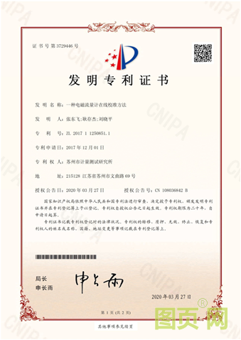 近日,蘇州計量測試院流量檢測室申請的一項科研成果“一種電磁流量計在線校準方法”獲得國家知識產(chǎn)權局頒發(fā)的發(fā)明專利證書。