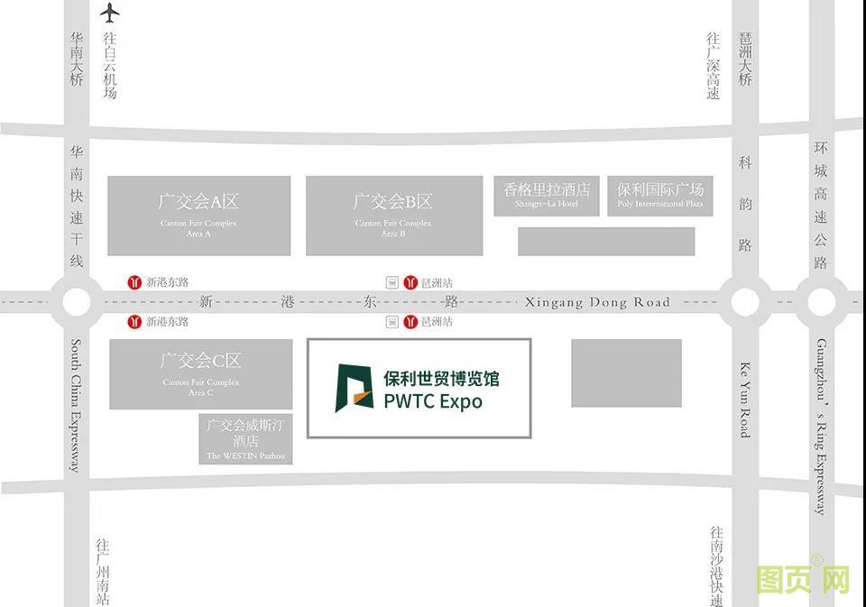 保利世貿(mào)博覽館坐落于廣州海珠區(qū)琶洲會(huì)展商圈核心地帶。地鐵8號(hào)線可直達(dá)展廳入口,其“琶洲站”與博覽館無縫接駁。路面交通網(wǎng)絡(luò)快捷方便,東臨環(huán)城高速,西接華南快速干線,北接新港東路,南接鳳浦中路,還有多條公交線路交匯于此,可快速到達(dá)廣州火車站、廣州東站、廣州南站、天河客運(yùn)站和白云國際機(jī)場。