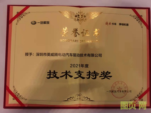 英威騰電驅榮獲一汽解放2021年度“技術支持獎”