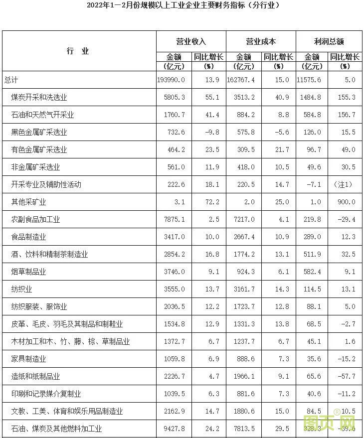 1-2月份,在41個工業(yè)大類行業(yè)中,21個行業(yè)利潤總額同比增長,19個行業(yè)下降,1個行業(yè)減虧。主要行業(yè)利潤情況如下:石油和天然