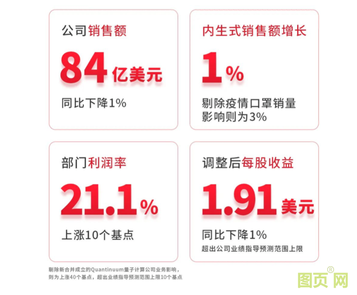 霍尼韋爾近日公布了2022年第一季度業(yè)績。公司第一季度銷售額為84億美元,同比下降1%,內(nèi)生式銷售額增長1%,部門利潤率上漲10個基點(diǎn)至21.1%。預(yù)計(jì)2022年全年銷售額將在355億美元到364億美元,高于公司此前354億美元到364億美元預(yù)期。